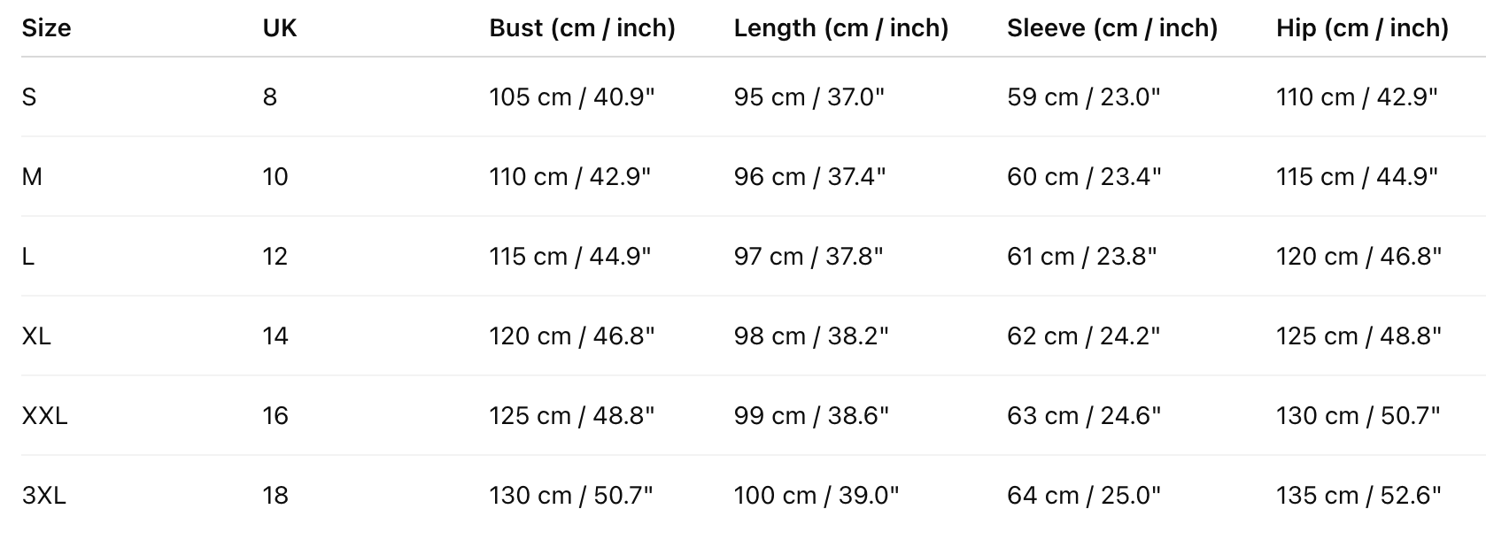 Size Chart