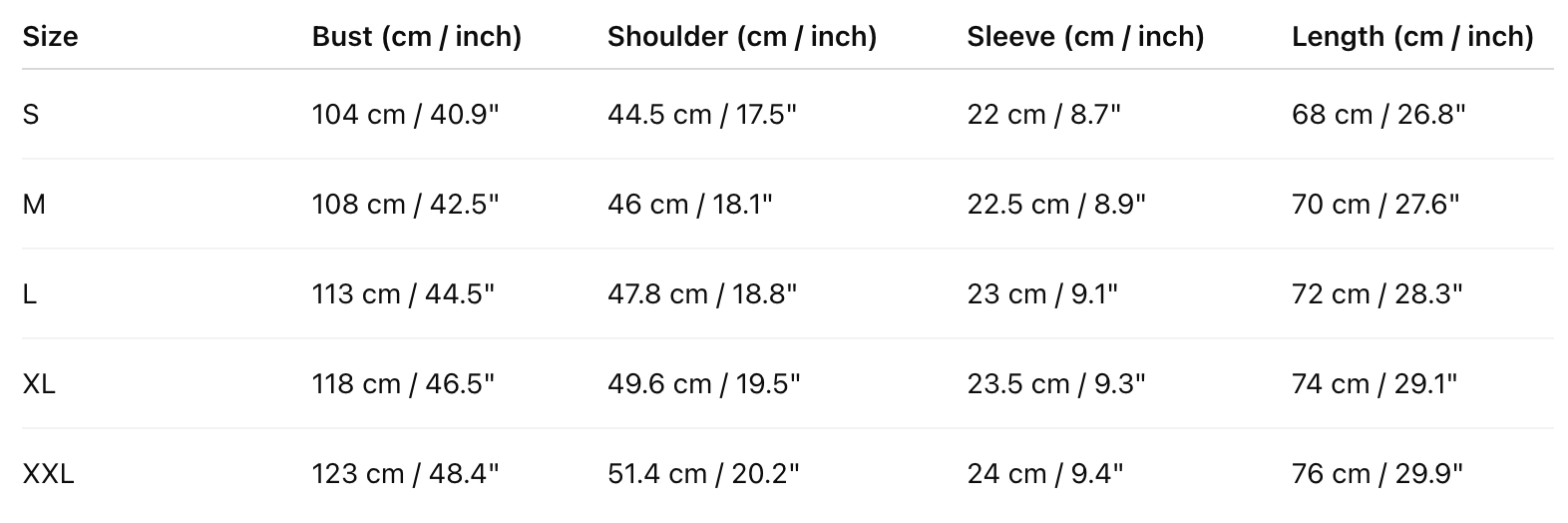 Size Chart