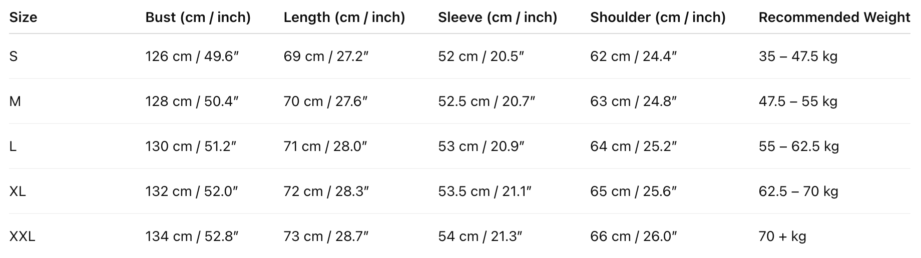 Size Chart